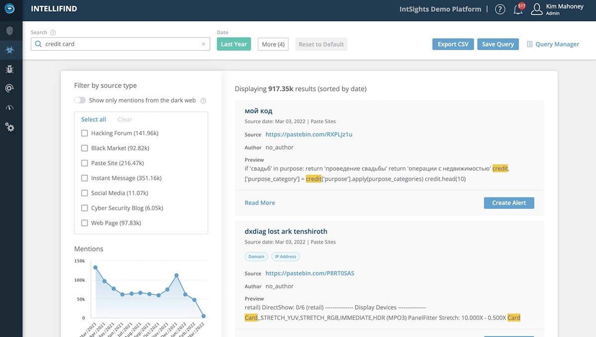 Màn hình giám sát Dark Web của Threat Command
