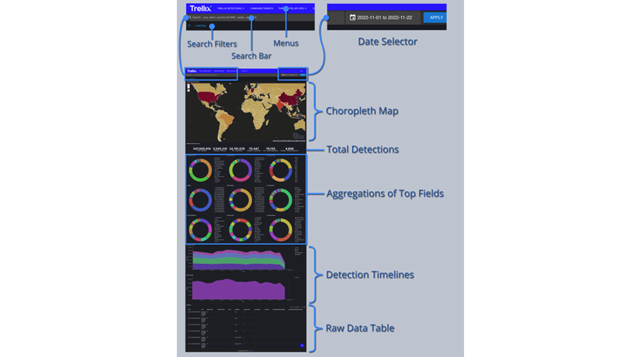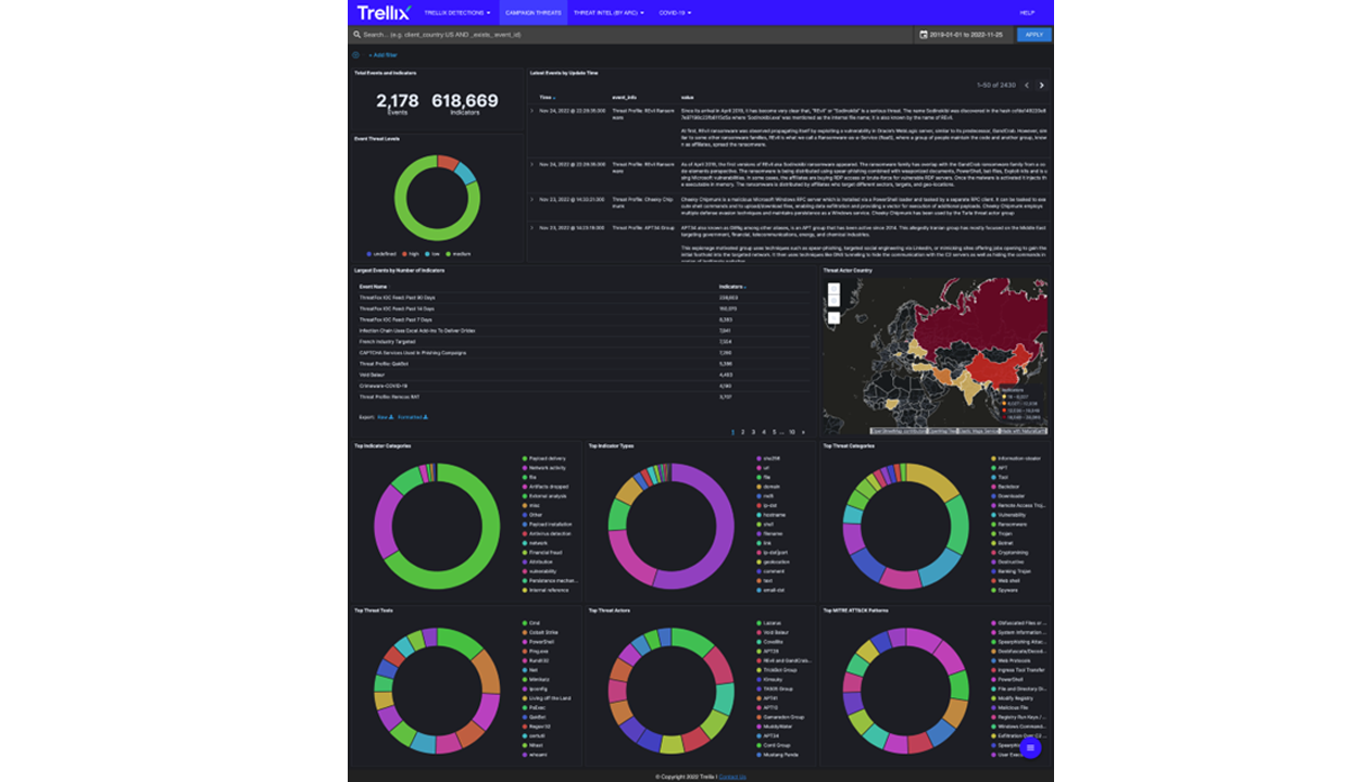 - Tận dụng dữ liệu telemetry toàn cầu của Trellix để cung cấp cái nhìn theo thời gian thực về các mối đe dọa độc hại, mức độ nghiêm trọng và xu hướng phát triển.